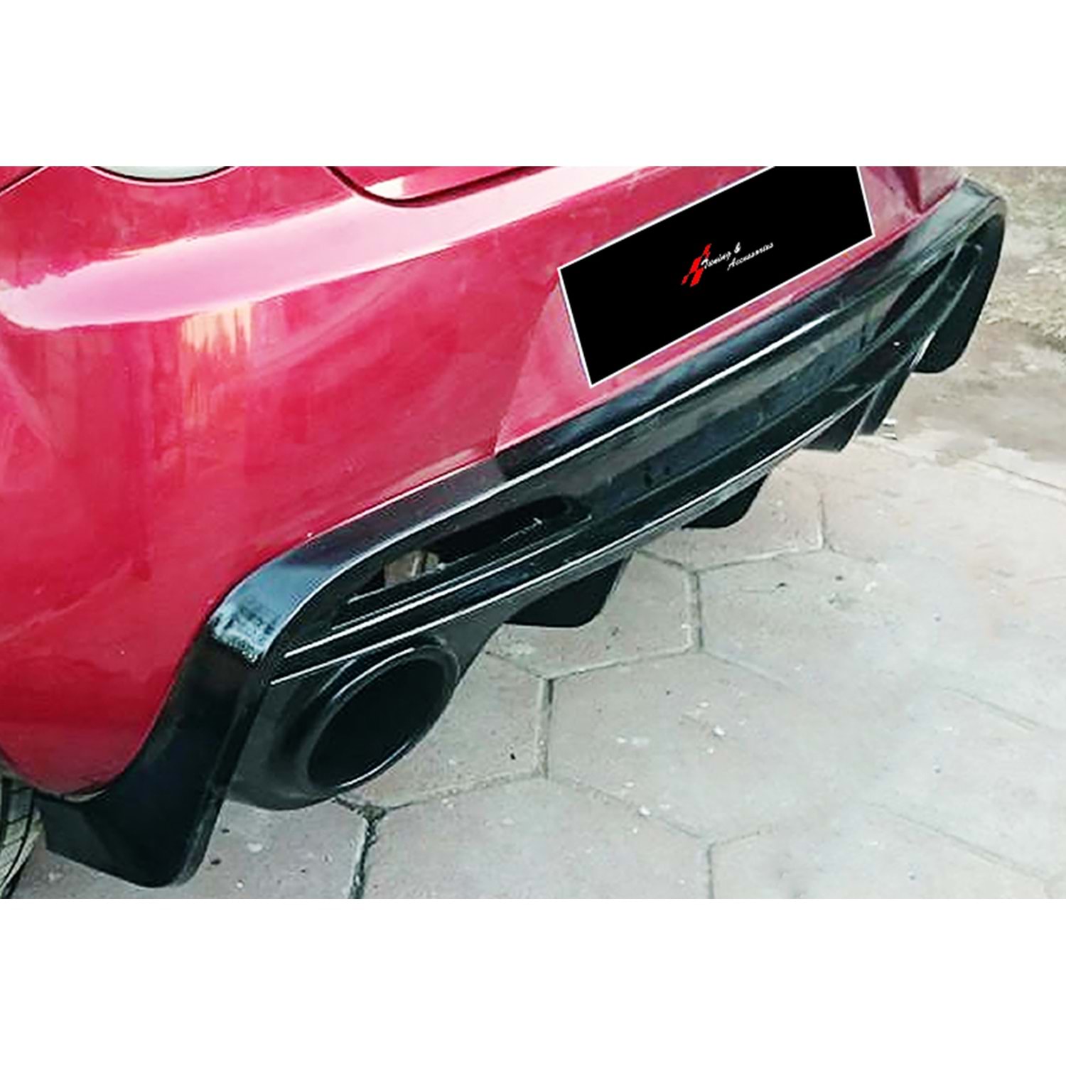 A. Romeo Mito 2008+ - Difüzör/Arka, Race V1 Stil, Sağ Sol Tekli Çıkış, Piano Black Ürün Yüzeyi, Vakum