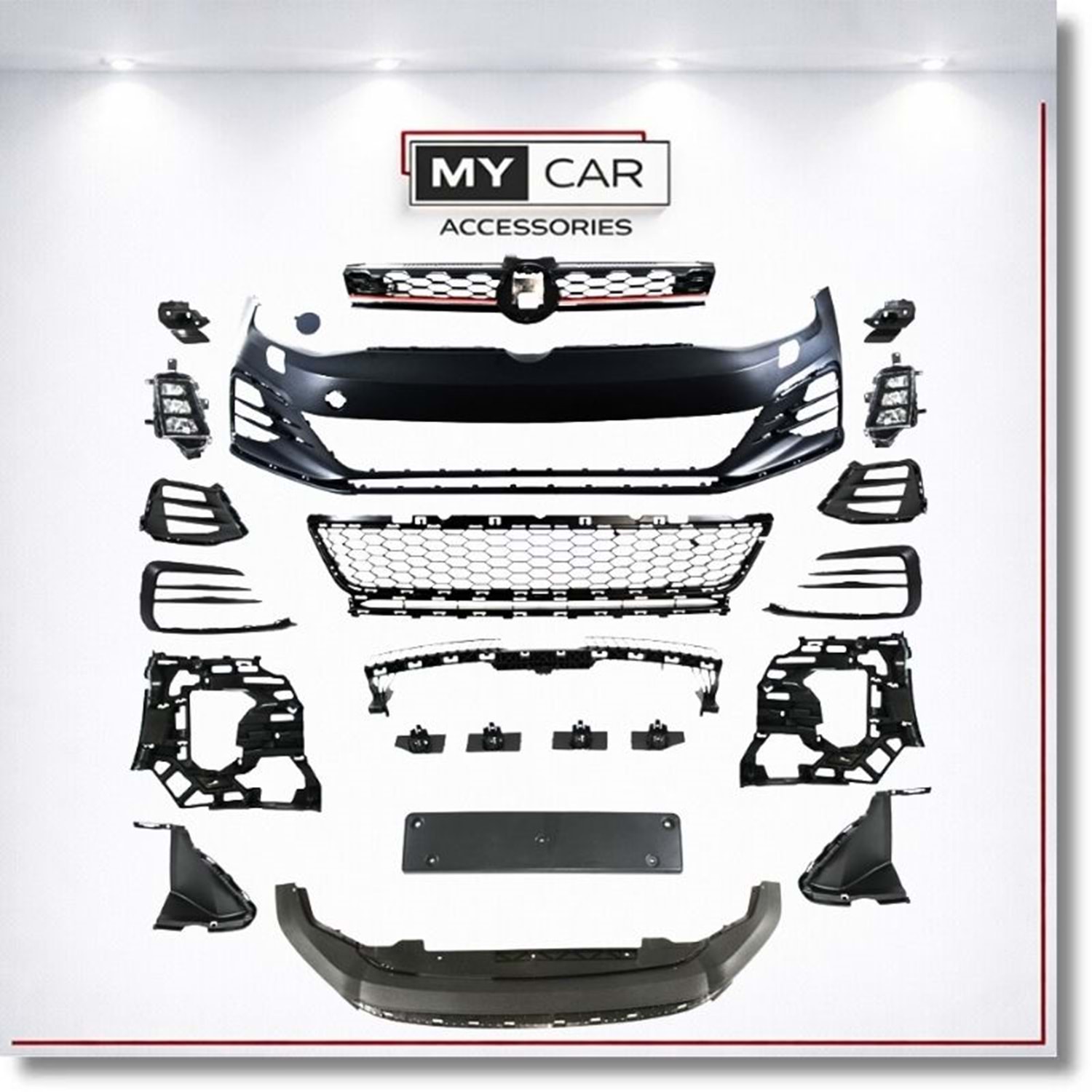 VW Golf Mk7 2012+ - Body Kit/Tampon Ön, GTI Stil, Pnjr., İşlem Yapılmamış Ham Ürün Yüzeyi, PP, SetVW Golf Mk7 2012+ - Body Kit/Tampon Ön, GTI Stil, Pnjr., İşlem Yapılmamış Ham Ürün Yüzeyi, PP, Set