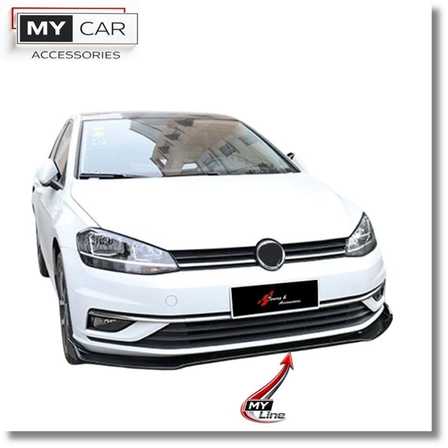 VW Golf Mk7 FL 2017+ - Tampon Splitter/Ön Flaplı, Evo V1 Stil, 3 Parça, Piano Black Ürün Yüzeyi, ABS